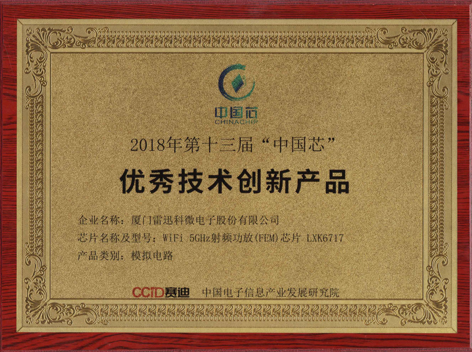 雷迅科公司W(wǎng)IFI 11AC射頻芯片LXK6717獲得2018年第十三屆“中國芯”優(yōu)秀技術(shù)創(chuàng)新產(chǎn)品獎。